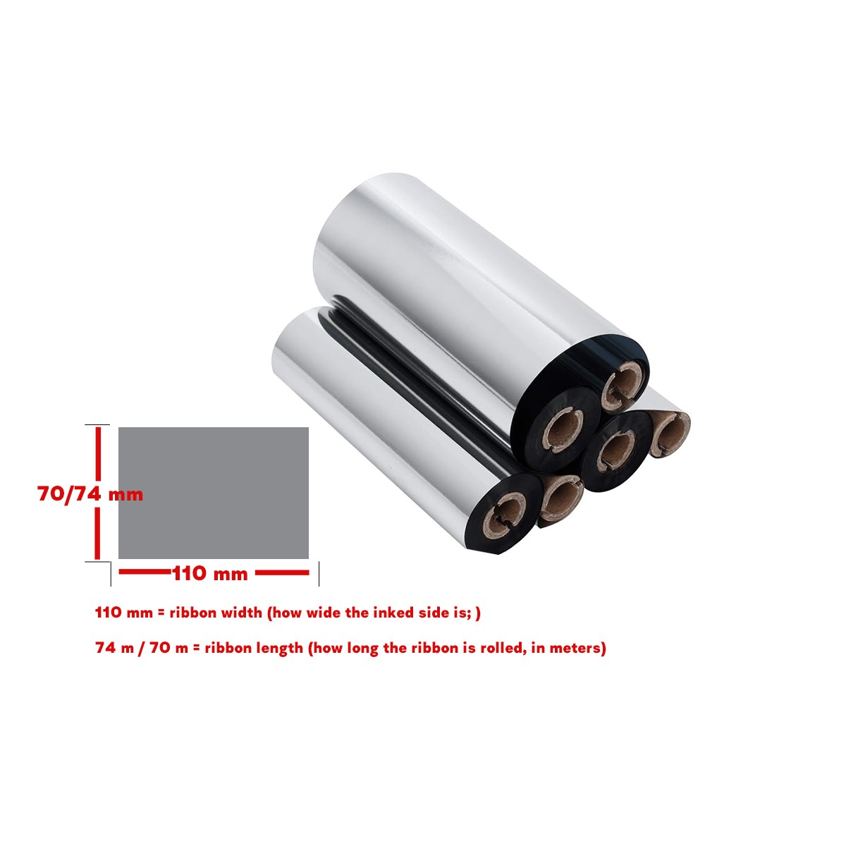 110x74m Resin Wax Thermal Transfer Ribbon for Zebra printer (1/2 inch core)